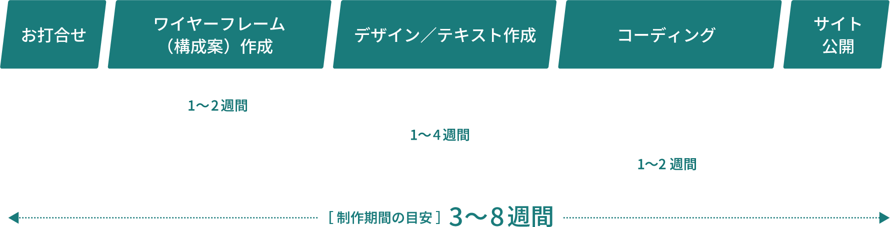 ※制作期間はクライアント様のご確認のタイミングや修正回数により、大きく変動いたします。まずはお気軽にお問い合わせください。