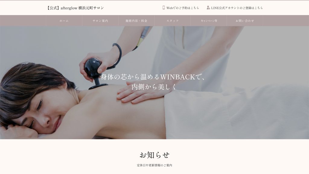 横浜の元町で、身体の内側から「健幸」になるウェルネスサロンafterglow様のホームページを制作させて頂きました。